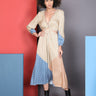 This elegant crepe satin Edeena dress with a side cut design adds a touch of luxury to your evening wear. Its abstract beige colour, featuring a ring twist, is perfect for any occasion. The full sleeves enhance the elegant look of this dress even further, as does its elasticated back.