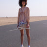 This super cute city-inspired print dress is made from a lightweight viscose fabric with cotton lining and detailed with small frills both front and back and features a deep V-neckline cut on both sides and long elasticated sleeves for extra comfort. A truly versatile piece to enjoy throughout the upcoming summer and beyond.