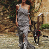 This gorgeous one shoulder dress is perfect for your next night out. The subtle grey printed crepe fabric has a delicate frill detail, which adds the perfect amount of femininity to the piece. The shape is figure-skimming, and the side slit will show off your best assets.