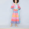 This geometric printed wrap dress is everything you want to wear on your next occasion. The V-neckline dress features long sleeves and a flowing skirt that gives you the perfect feminine look.