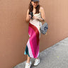 The Genilla Dress is cut from silky satin fabric, with a cowl neckline and a bare strappy back. Pair it with a pair of sneakers for endlessly comfortable style.
