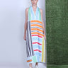 The style statement of the season! This modern racer back dress makes you the center of attention with its playful stripe print in a breezy viscose linen fabric. The loose fit flatters your figure while the maxi length shows just enough leg. Twirl and swirl through your day in the UVELIA DRESS! With its effortless elegance and head-turning style, this dress commands attention.