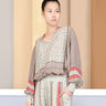 Add a touch of style to your wardrobe with this loose fit top. The geometric placement print and buttoned cuffs make it effortless for you to throw on any time of the day. Pair with white jeans, pointed toe flats and a cross body bag for a chic look.